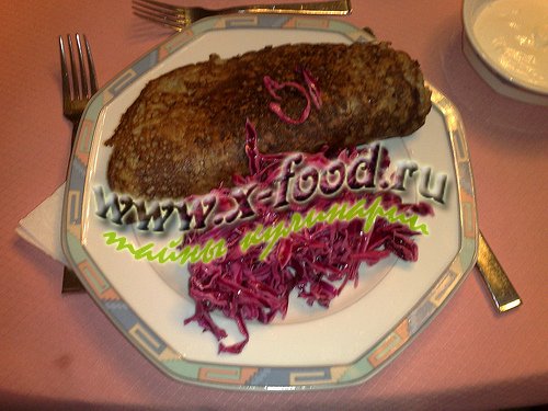 4. Фарш из отварного мяса соединить с поджаренным луком, солью и тонким слоем положить на поджаренные картофельные блины, завернуть и подавать к столу теплыми.