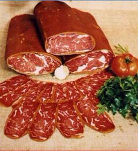 2. Приготовленное филе нанизать на металлические шампуры и жарить над раскаленными углями (без пламени) 8—10 минут, поворачивая вертел, чтобы филе равномерно прожарилось. Бастурму можно жарить на обычной сковороде.