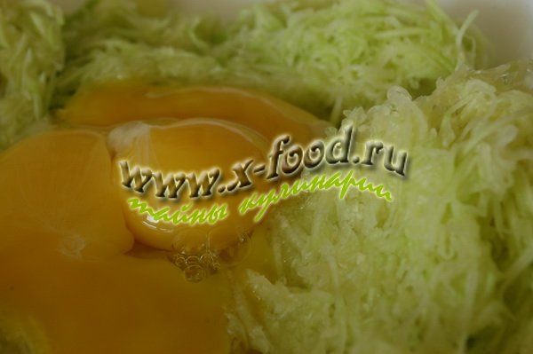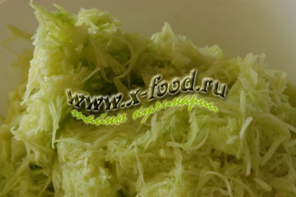 1. Кабачки промыть, счистить шкурку и натереть на мелкой терке, лишнюю жидкость можно отжать.