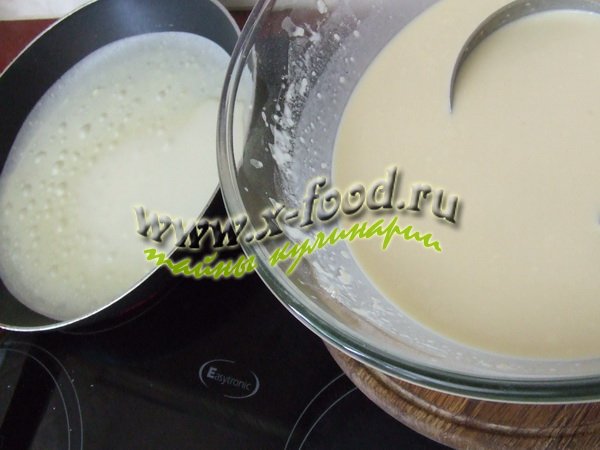 1. Сперва нужно приготовить блинчики. Смешать яйца с сахаром и солью, взбить. Добавить молоко. Перемешать. В другой миске соединить муку и соду, перемешать. Постепенно добавляя молочно-яичную смесь в муку замесить однородное гладкое тесто. Влить растительное масло. Перемешать. Выпечь тонкие блинчики.