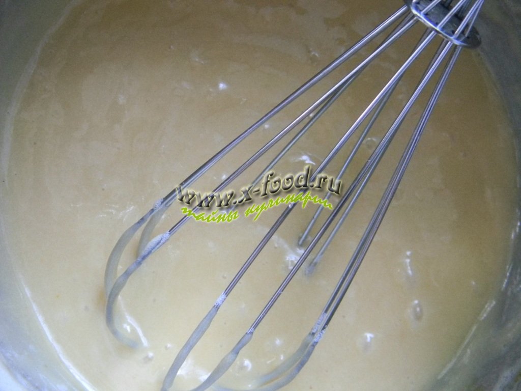 3. Всыпаем муку и осторожно размешиваем до однородной массы. Мешать нужно снизу вверх, от края к центру.
