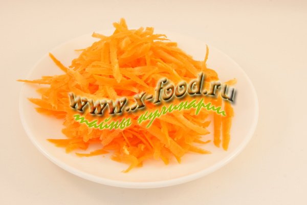 1. Первым делом морковь тщательно вымыть, соскоблить верхний слой и натереть ее на крупной терке.
