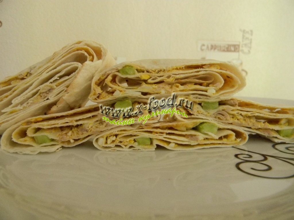 Рулет из лаваша с тунцом и огурцами
