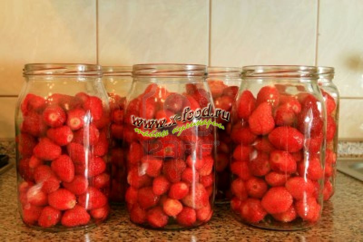 Банки наполняют ягодами и сахаром горкой на 1 см выше горлышка, накрывают марлей и выдерживают в течение 2—4 часов. Во время этого клубника выделяет сок, сахар частично растворяется в нем и содержимое банки самоуплотняется и оседает.
